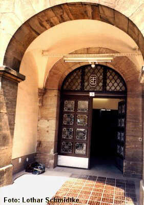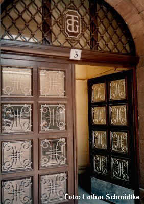 Abb.5: Leipzig, Eingang des ehemaligen Verlagsgebäudes B. G. Teubner mit dem